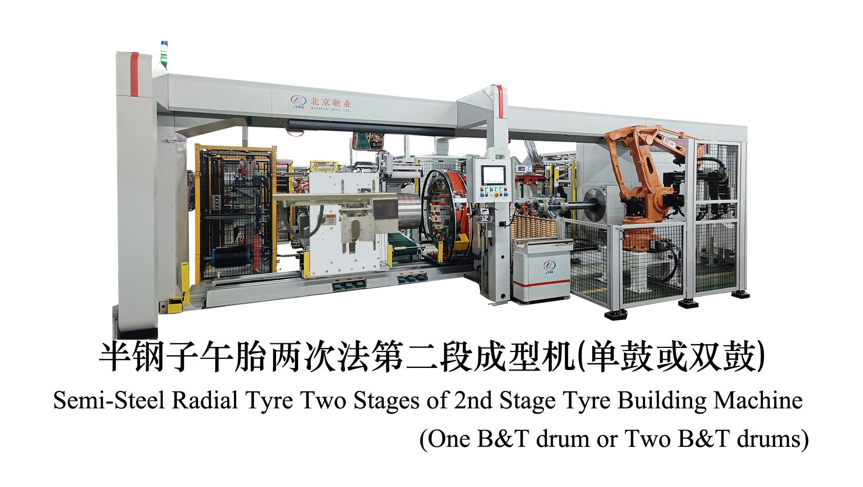 6.该设备采用传统的成型鼓,两种贴合内衬及帘布的成型方式可选,指形正包,伺服同步扣圈,推盘辅助胶囊反包;物料接头全自动,无人工干预;